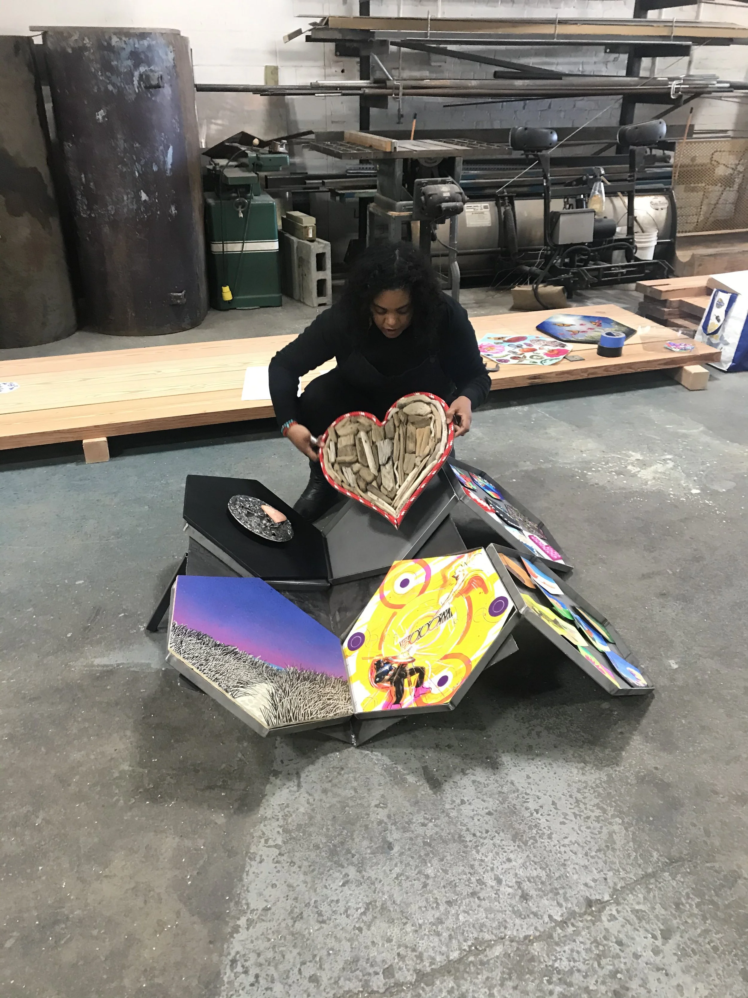 Over the next several weeks, professional artists, medical workers, and students all created and submitted their art on honeycomb shaped paper. These individual honeycombs were then curated and assembled into a larger piece of art. The final design was fabricated in metal by sculptor Kamil Peters.